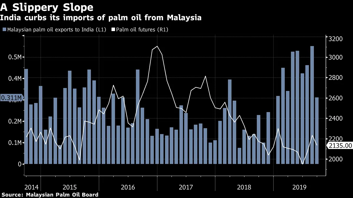 在亚洲又出现了一场贸易争端:印度 reportedly 正在抵制来自马来西亚的棕榈油。这是 一个大问题,因为印度是全球最大的消费国,而棕榈油在马来西亚经济中占据了很大一部分。但真正有趣的部分是什么呢?显然的进口限制背后的动机,这发生在马来西亚总理马哈蒂尔·穆罕默德抨击印度在克什米尔的政策之后。观察者们正在 直接联系到政治分歧,一位贸易专家指出:“这是印度第一次利用作为贸易伙伴的影响力来表达对政治声明的不满。”