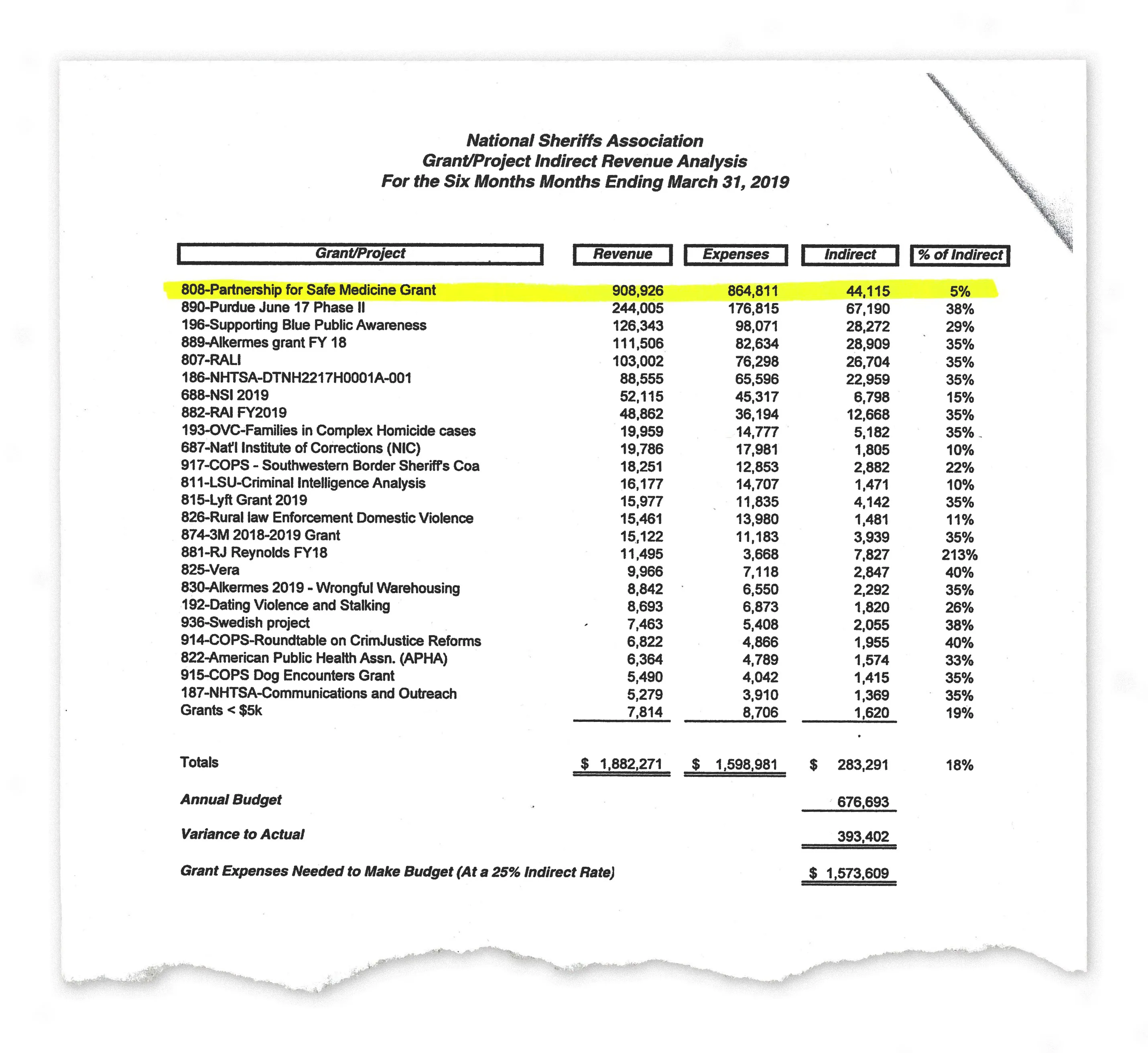 到2019年,PhRMA支持的非营利组织已成为警长们最大的资助提供者。4月份的一份内部财务文件显示,该合作伙伴在前六个月内向警长协会提供了908,926美元——几乎占该执法团体在此期间获得的190万美元资助的一半。