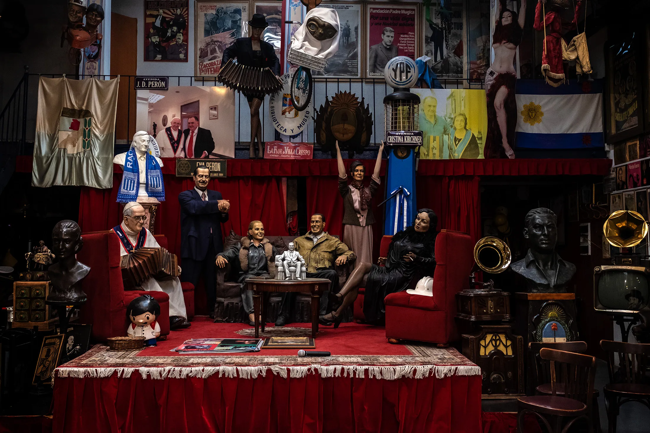 政治宣传品,包括基什内尔和佩隆的雕像,展示在位于布宜诺斯艾利斯的佩隆主义俱乐部Cafe Las Palabras,由爱德华多·瓦尔德斯拥有。摄影师:安妮塔·普查德·塞拉/彭博社两人关系密切,内斯托尔任命费尔南德斯先是他的竞选负责人,后来成为幕僚长。费尔南德斯因脾气暴躁而声名在外,这一声誉至今依然存在。他采纳了总统的集中权力结构——只与部长一对一会面,从不召开内阁会议。