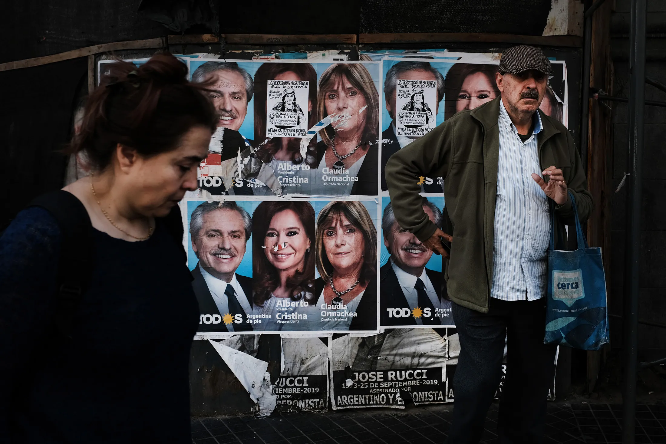 2019年10月19日,费尔南德斯和基什内尔的总统竞选海报在布宜诺斯艾利斯的街道上张贴。摄影师:斯宾塞·普拉特/盖蒂图片社Grupo Callao的方向提供了一个迹象,该组织以阿根廷首都的主要干道阿维达·卡亚奥命名,该干道经过国会和费尔南德斯的个人办公室。其原始成员正在成为他通往总统之路的顶级助手。