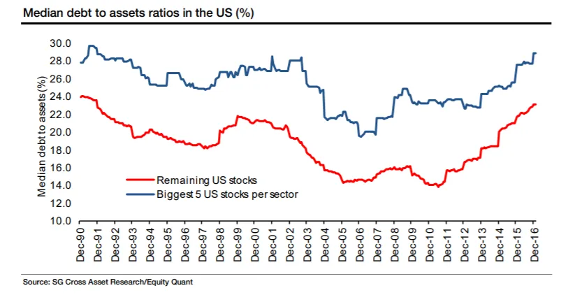 自然的假设是,最大的公司正在利用其市场主导地位,以共谋或寡头的方式行事。但也可能是它们只是利用其规模以其他公司无法或不愿意的方式进行杠杆操作。我上周指出,美国公司在危机后进行了杠杆操作,而欧洲公司则进行了去杠杆化。看起来这一现象主要是由最大的公司驱动的:
