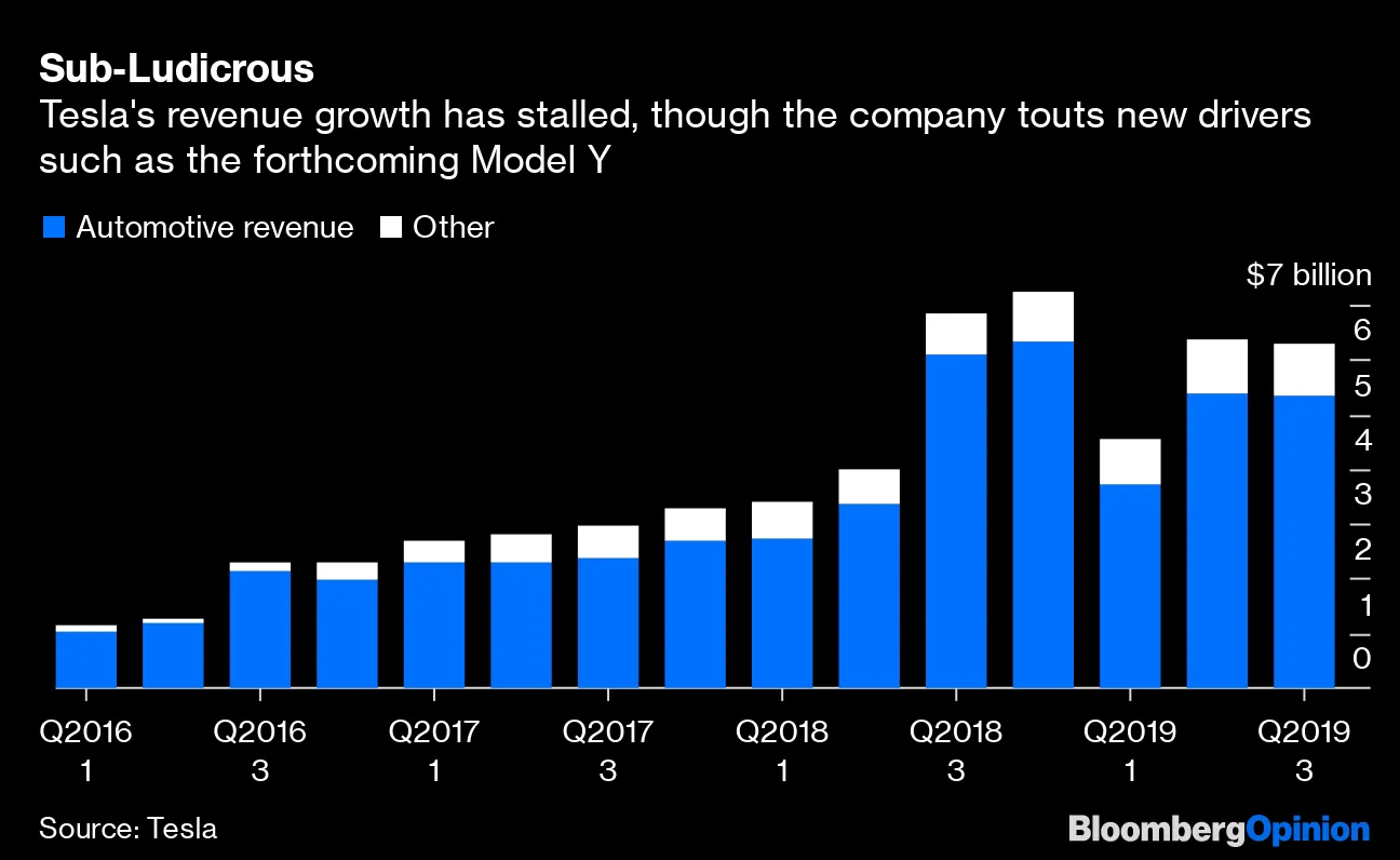对于一家被定价为快速增长的公司, 特斯拉公司确实没有增长,指出 利亚姆·丹宁。