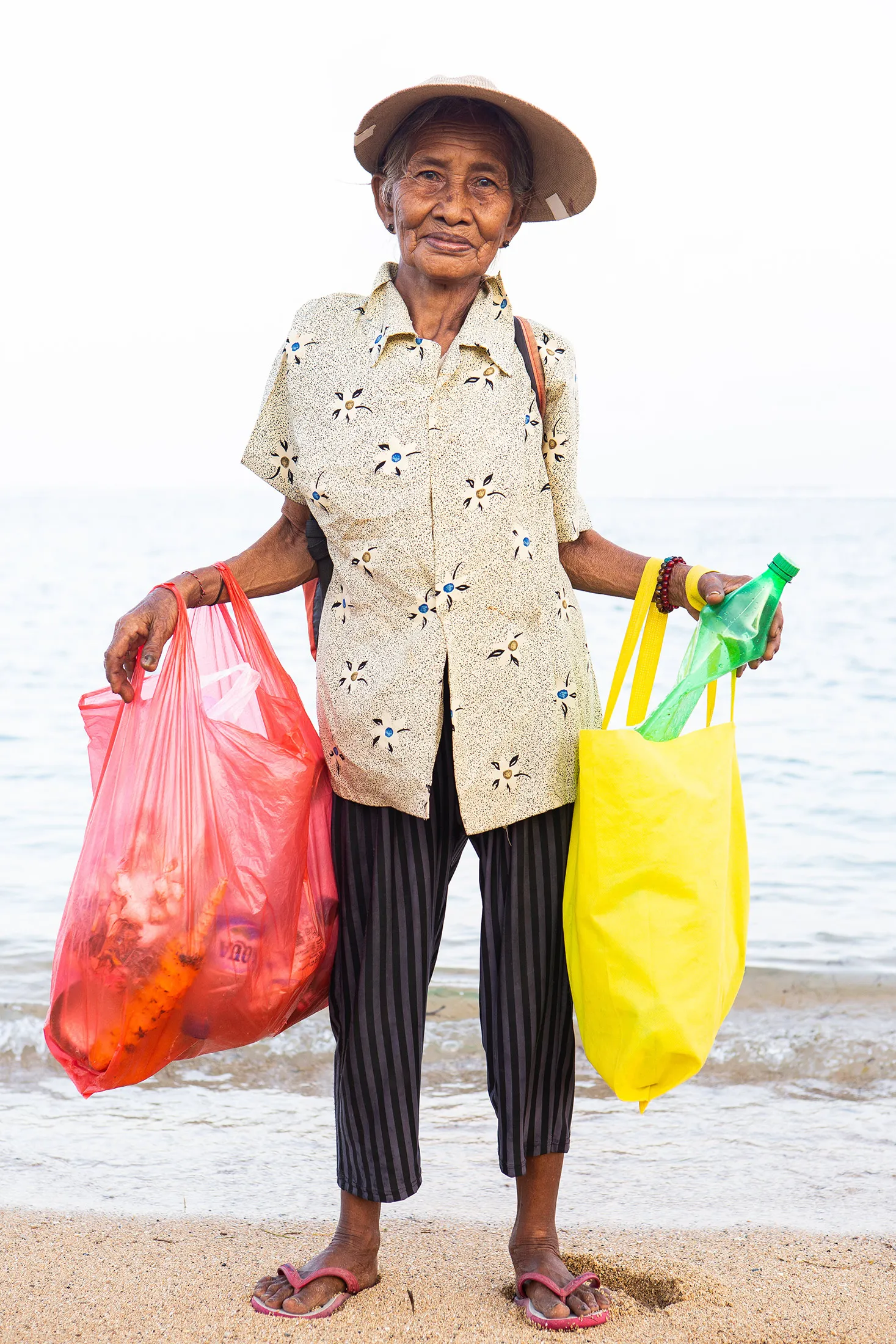 54岁的古西·玛德·阿斯特里是一名在登巴萨的沙努尔海滩工作的清洁工,她在黎明前开始工作,为城市做两个海滩清扫班,每月赚取127美元。她通过将收集到的塑料卖给银行来补充收入。这笔钱可以支付她在炎热的阳光下工作后偶尔购买的头痛药,这在以前是她负担不起的,还有节日的庙会供品——也许还会为加伦干节买一条新裙子,她说。现在大家都知道塑料更值钱,阿斯特里发现她每班只能装满两个购物袋,而不是两个大麻袋。“现在意识很高,”她说,“所以竞争变得更加困难。”