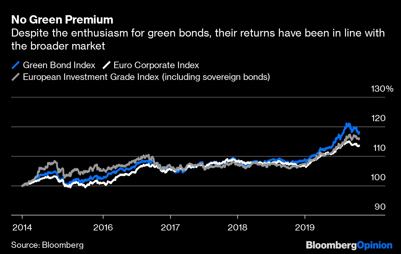 尽管对它们的需求巨大且不断增长,绿色债券并没有带来太多溢价,注意到马克·吉尔伯特。这可能是一个机会。