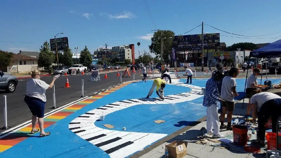 色彩丰富的设计可以对道路产生减缓交通的效果,划定行人空间,甚至简单地使地下通道和道路障碍物不那么刺眼。这样的项目也可以成为在变化中的城市中促进社区参与的途径。