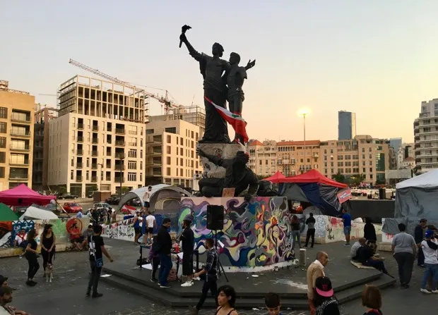 示威者在数十个城市的公共广场搭起帐篷。在贝鲁特的烈士广场和里亚德·索赫广场,人们即兴搭建了一个民主合作的帐篷城市,为一个以前只为超富人保留的地区注入了新生。
