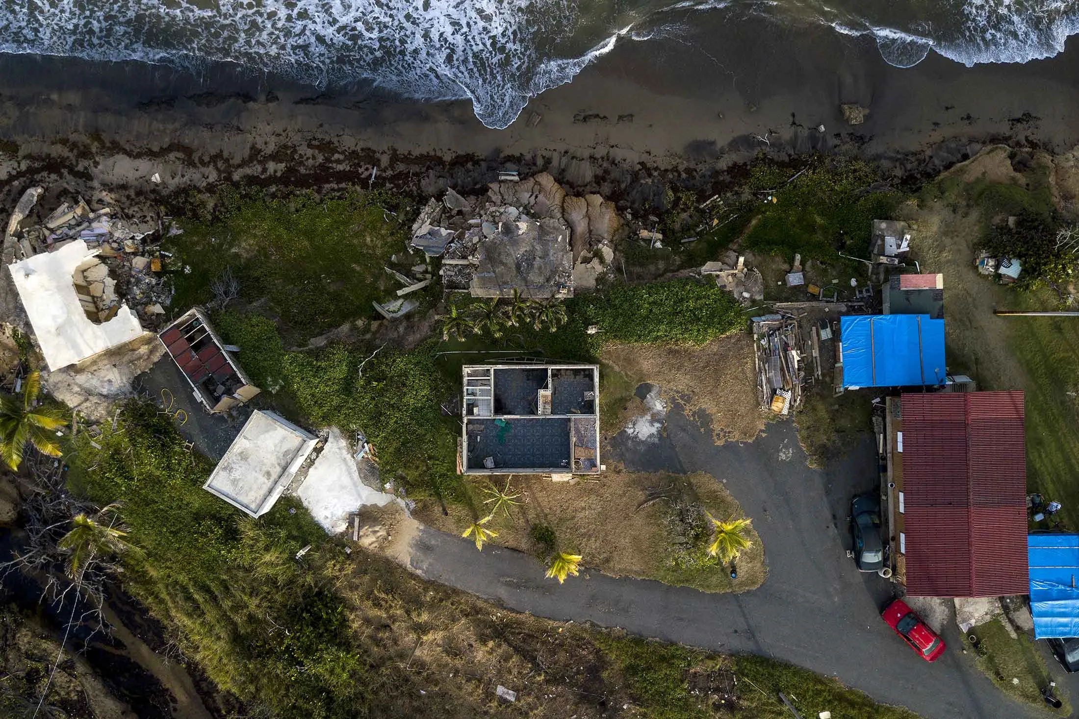 2018年9月17日,在波多黎各雅布科阿的埃尔内格罗上空拍摄的照片中,可以看到受到玛丽亚飓风影响的房屋。
