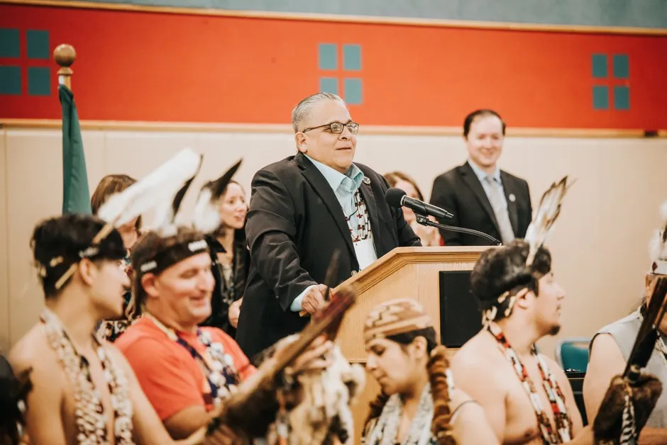 部落主席泰德·埃尔南德斯在2019年10月21日的土地归还仪式上发言。埃迪·亚历山大/尤里卡市。考虑到潮汐模式,这可能会淹没大部分岛屿,以及进行这种建设所需的前期投资和土地的神圣价值,伯杰尔表示,任何赌场建设似乎都极不可能。但通过无条件、永久且免费的方式签署这些土地,城市也签署了杜鲁瓦特的未来。她说,威约特部落可以并且应该在这里做他们想做的任何事情。