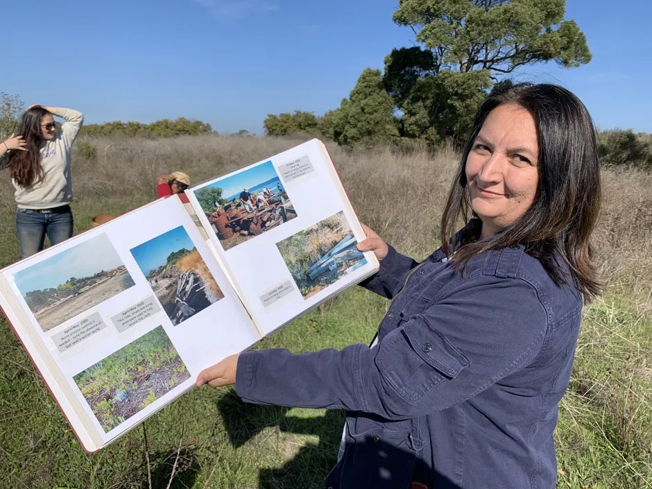 维奥特部落管理员米歇尔·瓦塞尔展示了2000年代初岛上的图片,当时废弃的船只散落在地上。莎拉·霍尔德/城市实验室但是赛德纳和其他部落领导人并不满足于让维约特与杜鲁瓦特岛的联系淡出记忆。从1992年开始,赛德纳与她的姐妹莱昂娜·威尔金森以及一群非土著的尤里卡人一起组织每年纪念1860年大屠杀的守夜活动。在首次购买1.5英亩土地后,维约特人不懈努力,致力于改造这座岛屿。