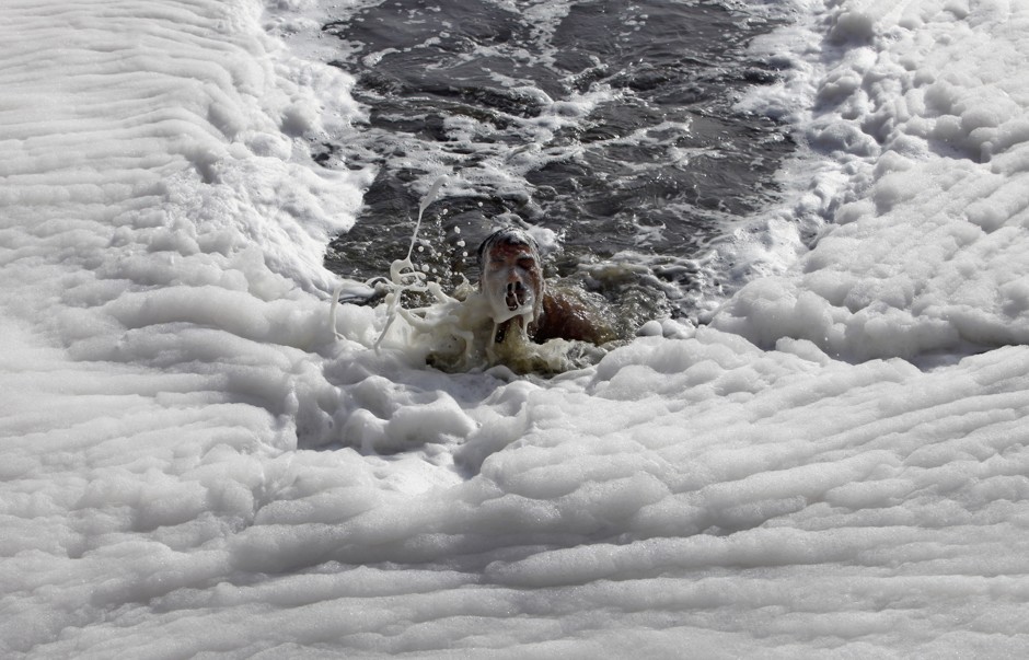 新闻图片似乎来自一部末日爆发电影。印度最神圣的河流之一被看起来像白色棉花糖的有毒泡沫覆盖。正午的 能见度 像是雾蒙蒙的黄昏。空气据说会让人眼睛刺痛。