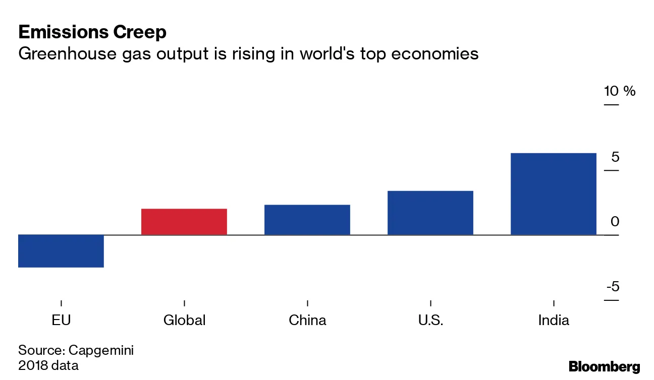 印度、美国和中国由于能源消费激增,去年温室气体排放量出现了最大幅度的上升,这一消费主要由化石燃料主导,根据一份新报告,这使全球气候目标面临风险。东南亚地区,煤炭使用持续增长,排放量也大幅上升,咨询公司Capgemini在其《全球能源市场观察》报告中指出,越南和菲律宾是主要推动者。这推动了2018年全球排放量上升2%,高于前一年的1.6%。