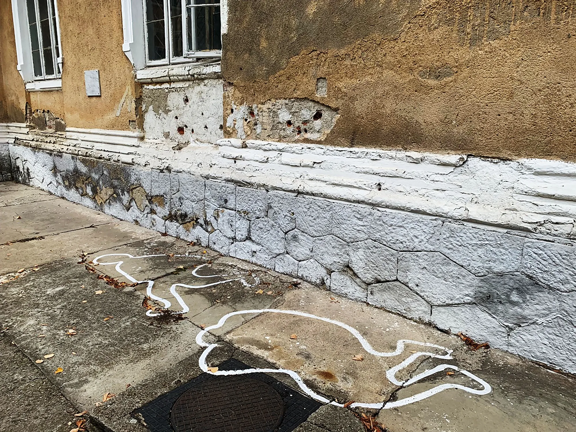 塔尔戈维什特博物馆的粉笔尸体轮廓。上个月的执行地点。摄影师:罗德尼·杰斐逊/彭博社