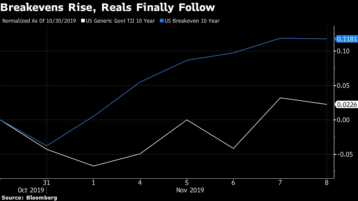 “从基本面来看,重新定价与鸽派美联储政策冲动完全一致,”BMO资本市场的Jon Hill写道。“通胀预期和股票正在上升,美元在多年强势后贬值,收益率曲线陡峭化,表明对政策失误引发经济衰退的担忧正在减弱。”