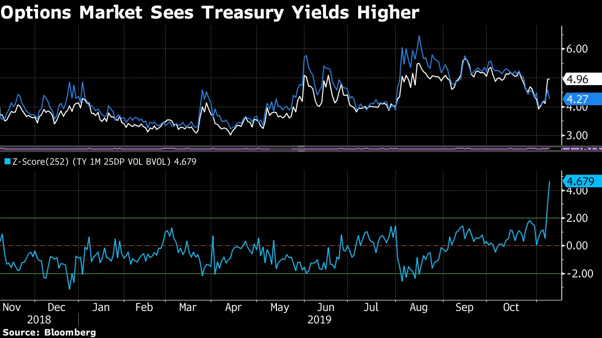 期权市场已经对国债的走向投下了票:10年期国债的看跌/看涨偏差已经失控,周四结束时超过其长期平均水平三个标准差以上(并且在隔夜交易中进一步上升,尽管由于交易量稀薄,这一波动需要打上星号)。