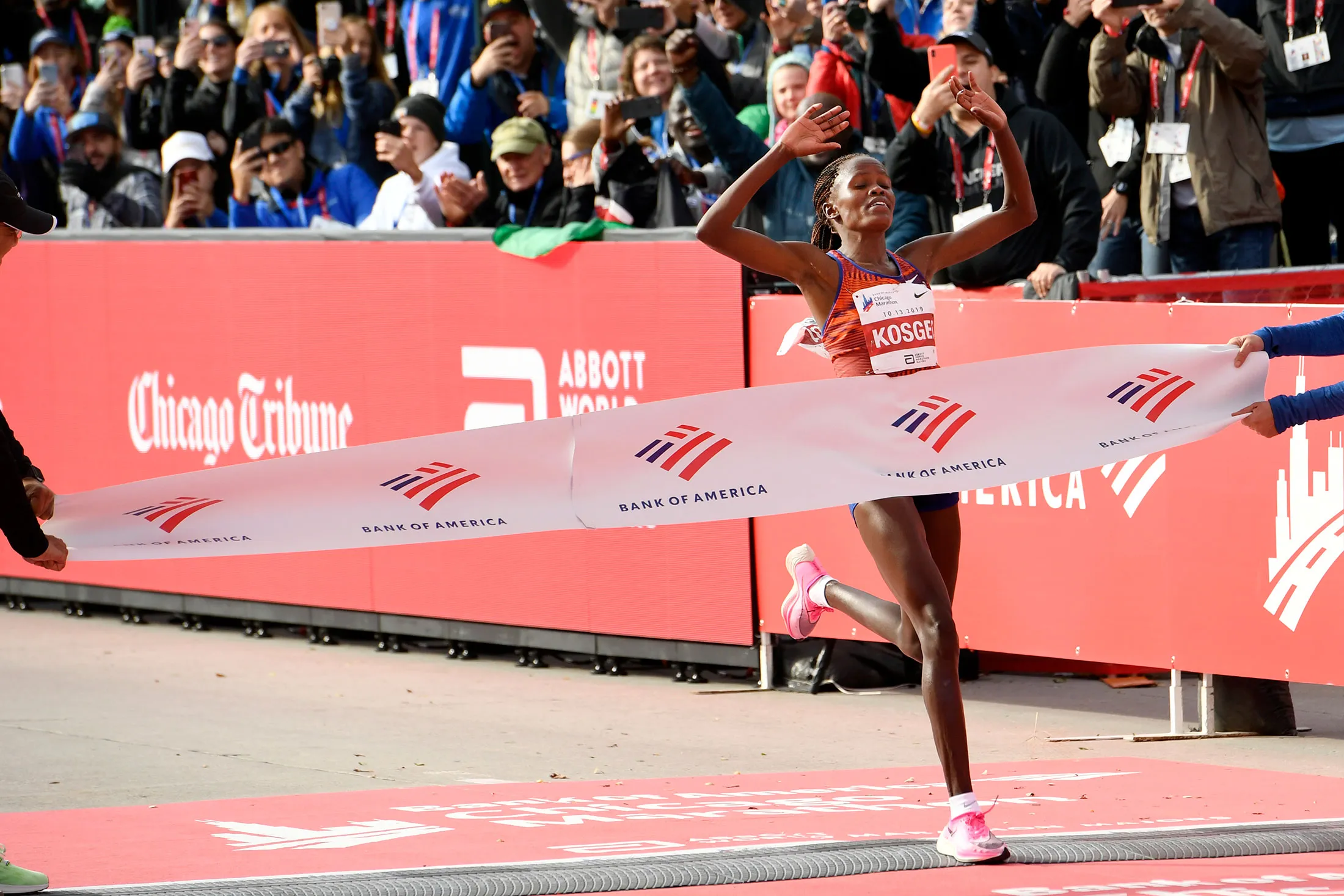肯尼亚的布里吉德·科斯盖赢得了芝加哥女子马拉松,创造了2:14:04的世界纪录,时间是10月13日。摄影师:保罗·比蒂/AP跑步可能正经历着十年前游泳时的那种时刻,当时 Speedo International Ltd. 发布了一款全身泳衣。模仿者迅速出现,打破了超过100项世界纪录,导致一些人将穿着这款泳衣与兴奋剂相提并论。游泳的管理机构国际泳联在2009年以压倒性票数投票决定禁止高科技泳衣,限制了材料和可以覆盖身体的面积。