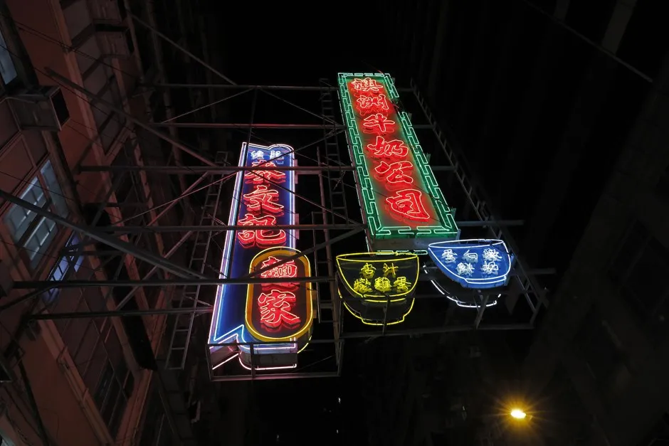 霓虹灯在2017年的香港照亮了一条街道。文森特·余/AP但经过许多材料和技术的变化,瞬间识别仍然至关重要。在今天的伦敦,你的眼睛迅速适应,在信息的丛林中寻找地铁的红、蓝和白色圆形标志。如果城市可以被阅读,这是一种速记形式。