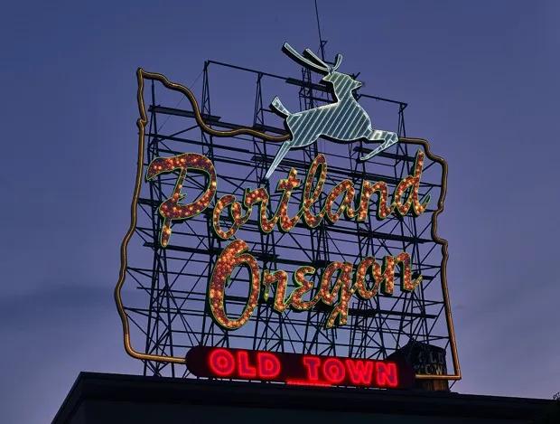 曾经宣传糖和运动服品牌的白鹿标志,现已成为波特兰市的象征,并且现在归该市所有。卡罗尔·M·海史密斯/国会图书馆标志也可以表明一个城市在经济和政治上的衰退。如果“零容忍”对滑坡的信念——从轻微犯罪到社会崩溃——有任何影响,而城市的标志因被忽视而恶化或被开发商拆除,这对未来的城市健康并不乐观。