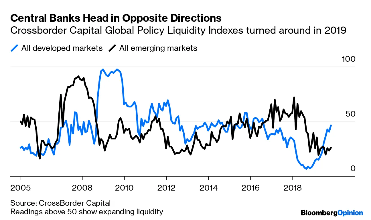 发达国家的中央银行,特别是美联储和欧洲中央银行,已经恢复了向其经济体疯狂注入流动性。约翰指出,新兴市场的中央银行——主要是中国——并没有跟随其后。 中国正在推迟货币刺激,正如约翰在他的 通讯中详细说明的那样,因为它面临着一个不想扩散成金融危机的巨大债务问题。从长远来看,这对中国是健康的,但短期内却导致经济疲软,可能会拖慢世界其他地区的增长。