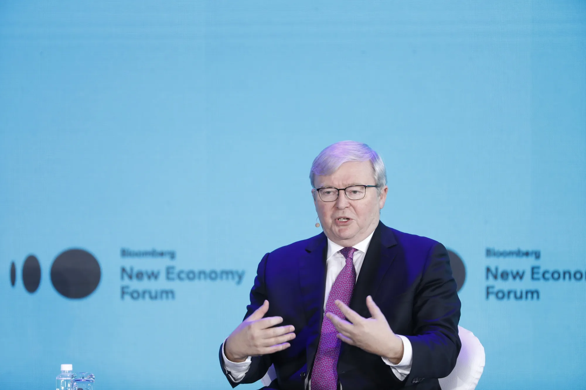 凯文·鲁德,澳大利亚前总理,于2018年11月6日星期二在新加坡的彭博新经济论坛上参加小组讨论。由彭博媒体集团(彭博有限合伙企业的一个部门)组织的新经济论坛旨在汇聚公共和私营部门的领导者,以寻找解决世界最大挑战的方案。摄影师:贾斯廷·陈/彭博社没有什么比新经济国家的前景更具破坏性。