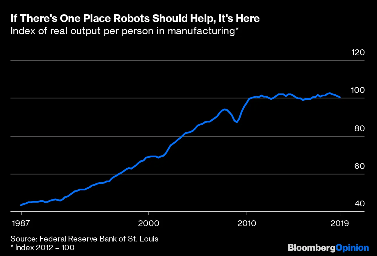 这些数字并不支持安德鲁杨关于机器人压迫中产阶级的说法,诺亚·史密斯写道。