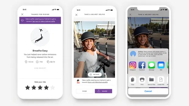 它的工作方式很像滑板车公司如何通过拍摄停放在行人通道外的滑板车照片来促使骑行者进行人行道清理。在应用程序的“计算机视觉技术”验证照片没有欺骗公司的情况下,免费骑行和其他激励措施将随之而来。该公司还鼓励人们在社交媒体上发布带有标签#BirdHelmetSelfie的照片。