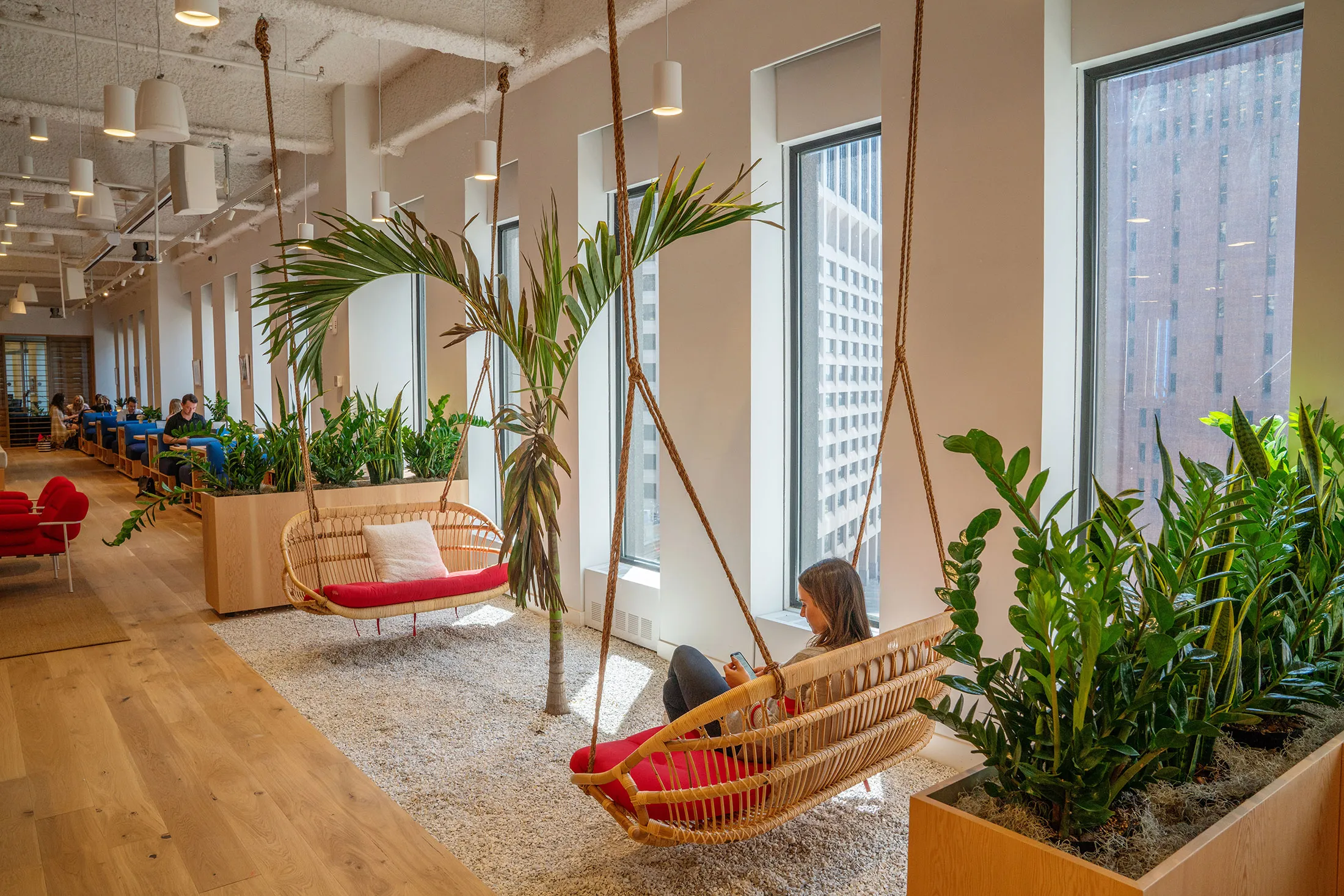 在纽约曼哈顿的WeWork 85 Broad Street办公室内部。摄影师:大卫 ‘迪’ 德尔加多/彭博社在WeWork之后,其他交易也受到审查。软银在2015年投资了滴滴出行,当时该中国公司的估值约为60亿美元。随后,随着滴滴的估值攀升至560亿美元,软银大约每年再投入更多资金。