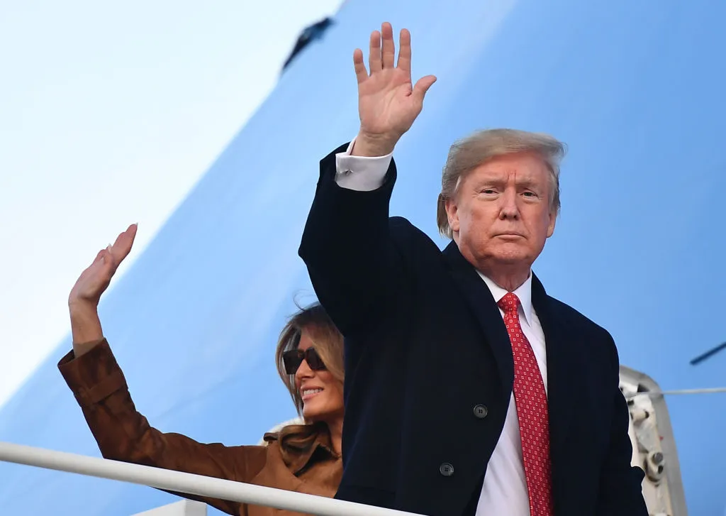美国总统唐纳德·特朗普和第一夫人梅拉尼娅·特朗普在2019年11月26日从马里兰州安德鲁斯空军基地登上空军一号时挥手致意。- 特朗普前往佛罗里达州参加集会,并在他的马阿拉歌度假村度过感恩节假期。(照片由曼德尔·甘恩/法新社提供)(照片由曼德尔·甘恩/法新社通过盖蒂图片社提供)### 民主党继续推进弹劾