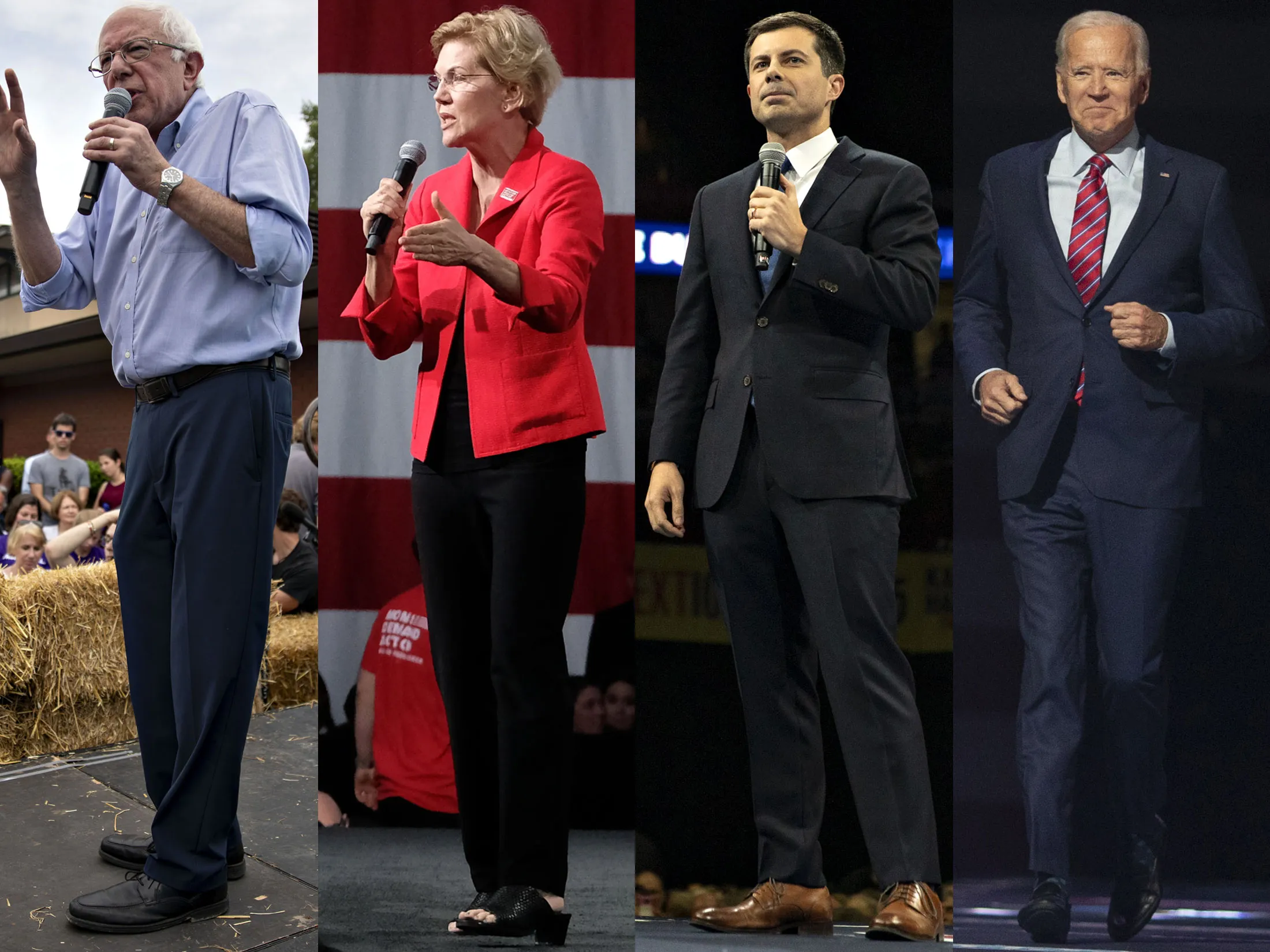 从左到右:伯尼·桑德斯、伊丽莎白·沃伦、皮特·布蒂吉格和乔·拜登。来源:彭博社伯尼·桑德斯取消四年制公立大学、社区学院和职业学校的学费和费用。取消1.6万亿美元的学生债务,并扩大佩尔助学金以覆盖超出学费的费用。伊丽莎白·沃伦两年制和四年制公立大学的免费学费和无费用,此外为4200万美国人免除高达5万美元的学生债务。皮特·布蒂吉格为80%的美国家庭提供公立学校的免费学费。扩大佩尔助学金计划,并创建一个10亿美元的社区学院基金,以支付大学的附加费用,如儿童保育和交通。乔·拜登为最近的高中毕业生和许多成年人提供两年的免费社区学院或高质量培训。“首笔资金”计划意味着学生可以将佩尔助学金和其他援助用于超出学费的费用。