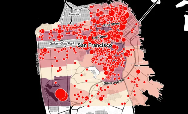 反驱逐映射项目的一个视角,该项目起源于旧金山湾区。反驱逐映射项目一些反映图旨在为其制图者争取变革,而另一些则仅仅寻求为公众知识做出贡献。这些地图与例如 人道主义映射项目 的关键区别在于,它们是由希望看到改革的人们制作和使用的。“他们通常是在没有主要机构支持的情况下进行的,”达尔顿说。这个术语是由加州大学伯克利分校的政策教授南希·李·佩卢索在1995年创造的,涵盖面广,其含义因上下文而异。
