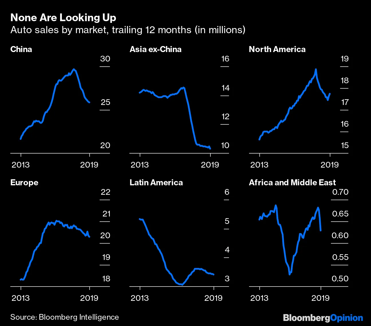 如果你在想为什么全球的汽车制造商正在 裁员,这张来自 内森尼尔·布拉德 的图表应该能给你一个线索: