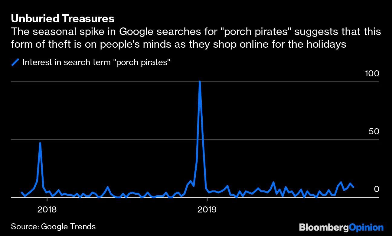 因为我们辉煌的科技时代唯一无法颠覆的就是人性的黑暗面。例如,亚马逊的快速电子商务不仅让购物变得更容易,也让偷东西变得更简单。你可以在被称为“门廊盗窃”的不酷新趋势中看到这一点,正如Sarah Halzack所指出的那样: