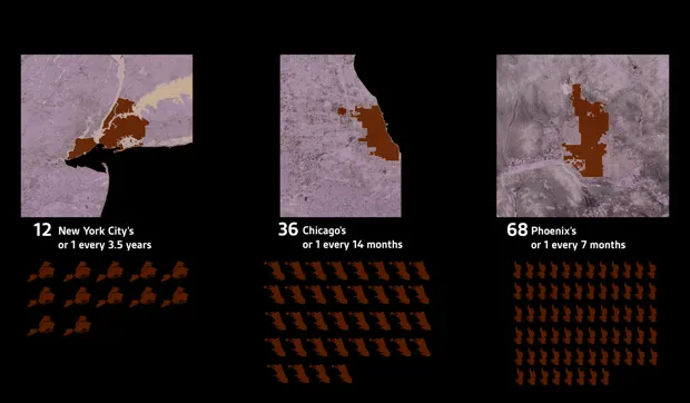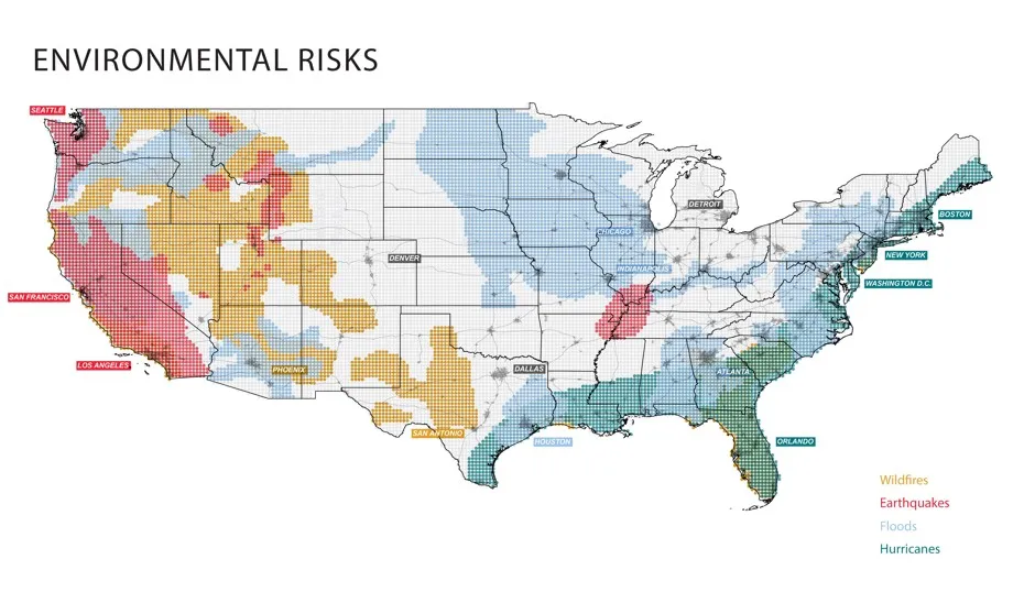 来自McHarg中心的致谢预计在未来一个世纪,将有1亿人迁入和迁移到该国。随着他们的到来,将需要更多的能源资源、水和密度。“大多数人口统计学家预计,这些人中越来越多的比例将居住在纽约、芝加哥和凤凰城等主要美国城市,”项目中写道。为了在像纽约市这样的高密度地区容纳他们,我们需要12个纽约市规模的新城市;同样的人口将需要68个像凤凰城这样的低密度地区。