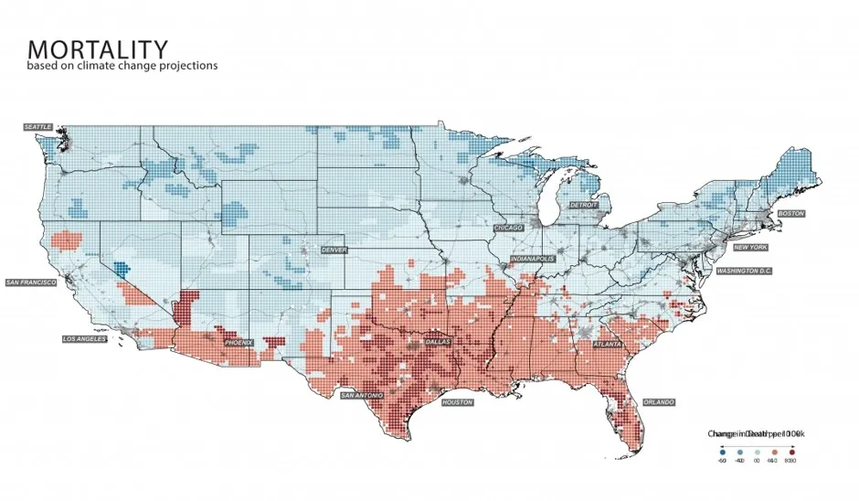 “到21世纪末,温度将平均上升9.3华氏度。”感谢McHarg中心总体来看,情况如往常一样严峻。美国南部与热相关的死亡人数可能会增加——但北部地区与寒冷相关的死亡人数也可能增加。暴露在德克萨斯州和墨西哥湾沿岸户外温度下的工人将面临与热相关死亡的最高风险,但每个人的风险都可能增加。