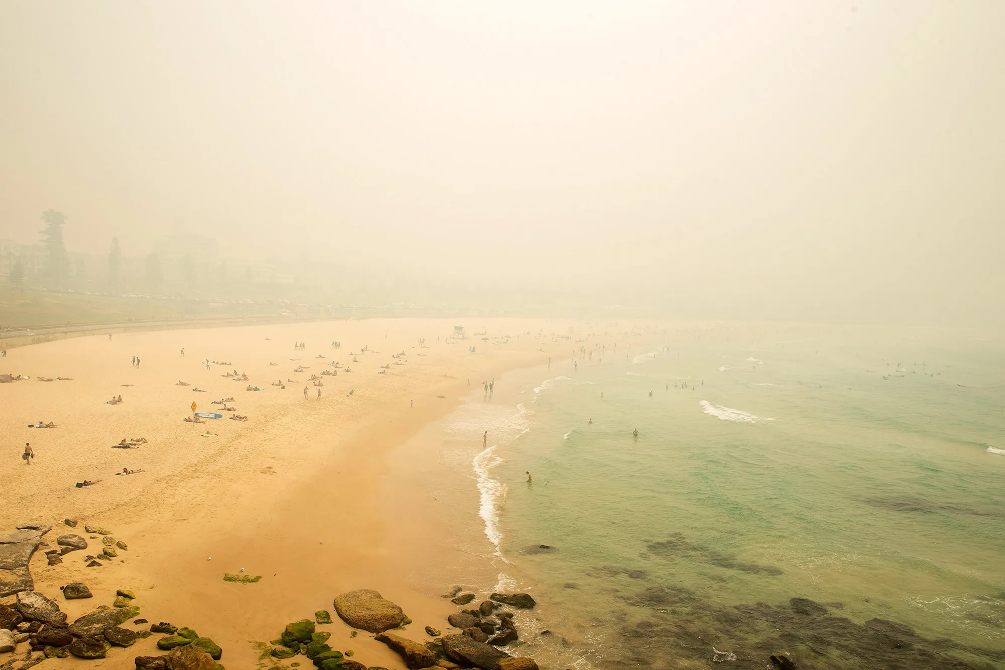 **前所未有的烟雾。**澳大利亚的健康组织宣布覆盖悉尼的野火烟雾为“公共健康紧急情况”,因为空气污染水平达到了“有害”阈值的11倍。