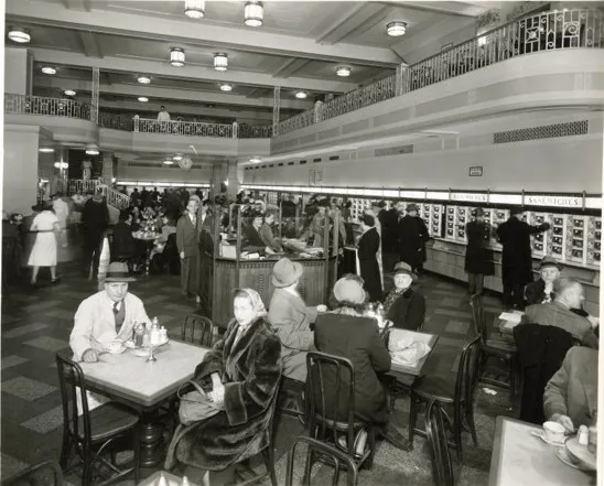 没有藜麦:纽约人在第六大道的自动餐厅用午餐。感谢纽约公共图书馆数字收藏快速午餐让位于 自动餐厅,在20世纪初,巨大的投币式自动售货机提供肉饼和五分钱的派 在中央厨房准备并运送到全市各地。“它被认为是干净、安全、绝对民主的,并且 *快速,”*沙皮罗说。“你可以精确选择你想要的东西,根本不需要和任何人说话。”