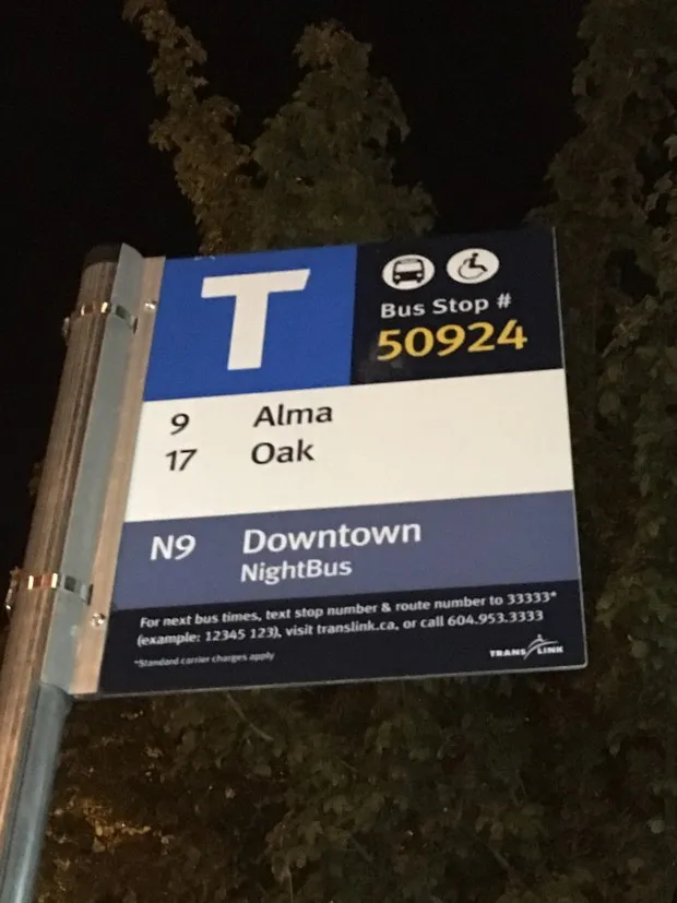 温哥华的公交站牌。由玛丽·布坎南/TransitCenter提供附近还应张贴预定到达时间,以及票价信息,因为这可能是某人能否乘车的关键因素。然而,布坎南很难想到一个始终如一地做到后者的机构。