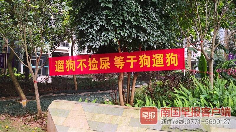 遛狗不捡屎,等于狗遛狗?南宁一小区条幅标语引争议_风闻