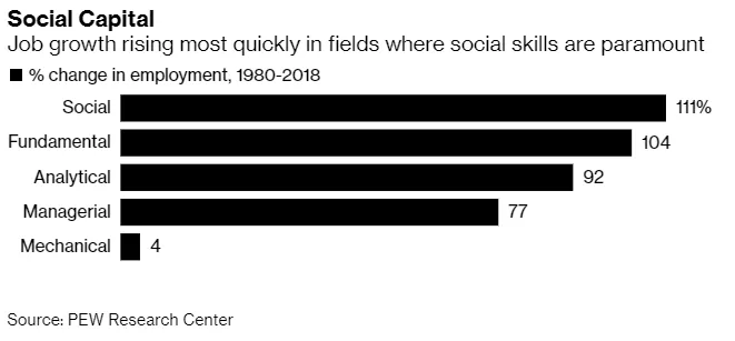 美国女性的工资增长速度更快。她们开始主导依赖技能的职业,包括谈判和说服,例如律师和顾问。