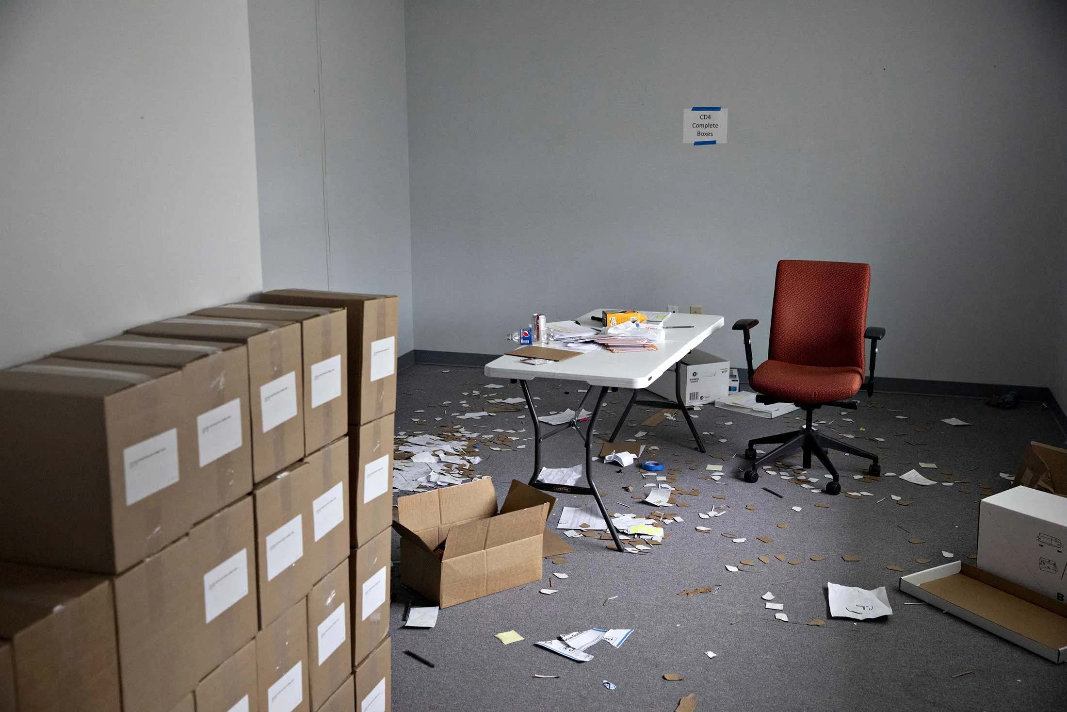 在德莫因的民主党办公室里,选民登记表的盒子。