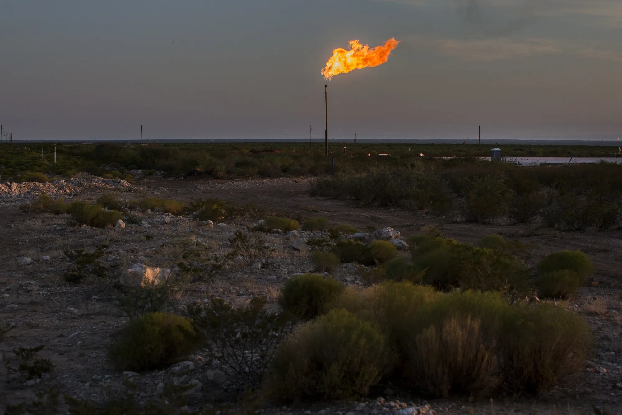去年黄昏时分,在德克萨斯州佩科斯附近的田野里有一个气体火焰。