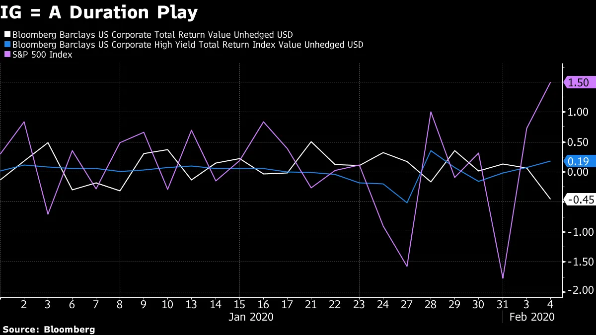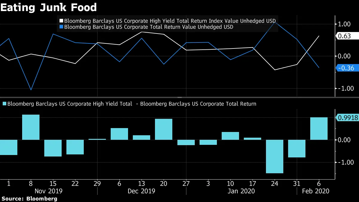 本周高收益债券的表现超过投资级债券,幅度是自11月以来最大的(显然,国债也经历了自那时以来最糟糕的一周)。
