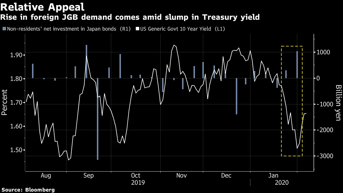 较低的国债收益率意味着对日本债券的需求增加。