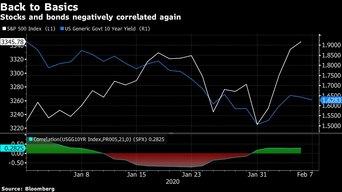 在1月中旬, 标普500与国债收益率之间的强烈负相关 已经转回为正相关。