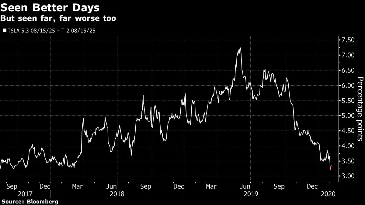 可以肯定的是,特斯拉的股票与其信用基本面之间存在一种简单的关系:超过40亿美元的三种不同债券发行将在股票价格保持在某些阈值之上时转化为股权(大约360美元为2021年债券,327.5美元为2022年,310美元为2024年)。