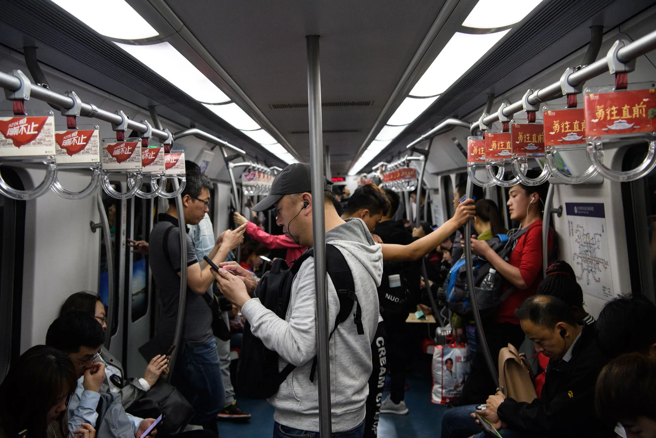 2018年4月25日,北京地铁上的乘客。摄影师:盖蒂图片社