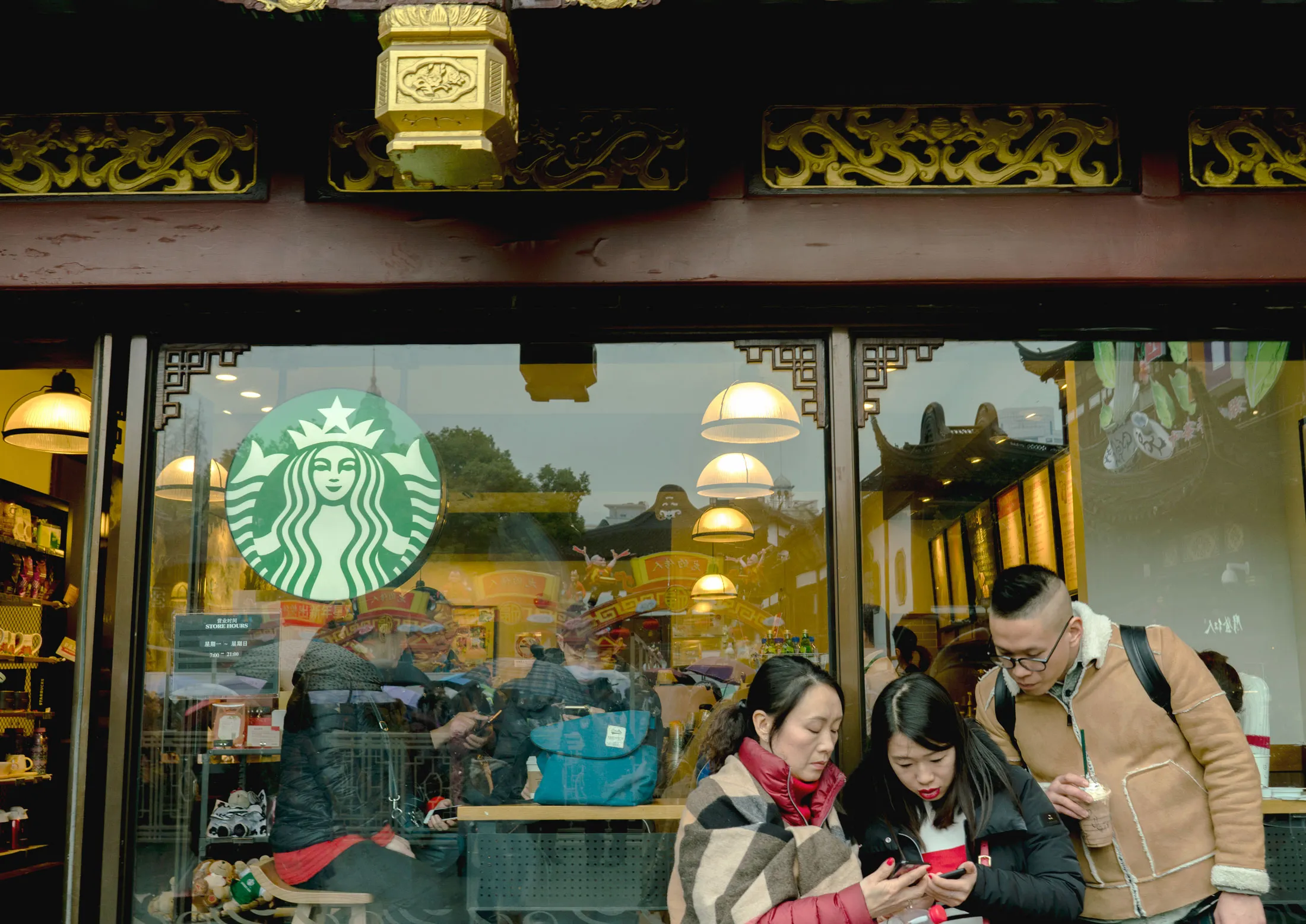 2018年2月24日,顾客在上海豫园商城的星巴克。摄影师:张鹏/LightRocket通过Getty Images
