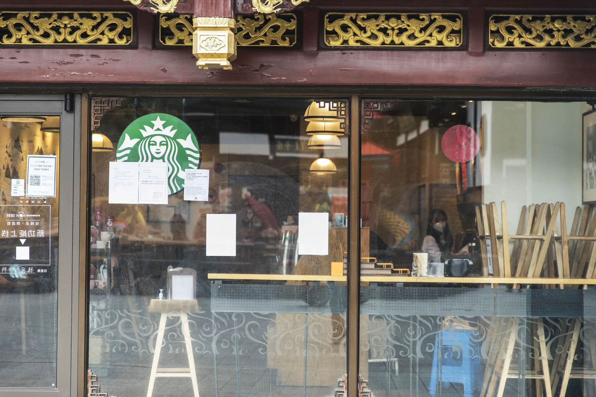 2020年2月7日,上海豫园商城一间关闭的星巴克窗户上张贴的告示。摄影师:沈其来/彭博社星巴克在中国大陆关闭了超过一半的咖啡店——至少2000个地点。这家总部位于西雅图的咖啡连锁店维持了其2020年的预测,但表示这些预测不包括关闭的影响,因为尚无法计算。