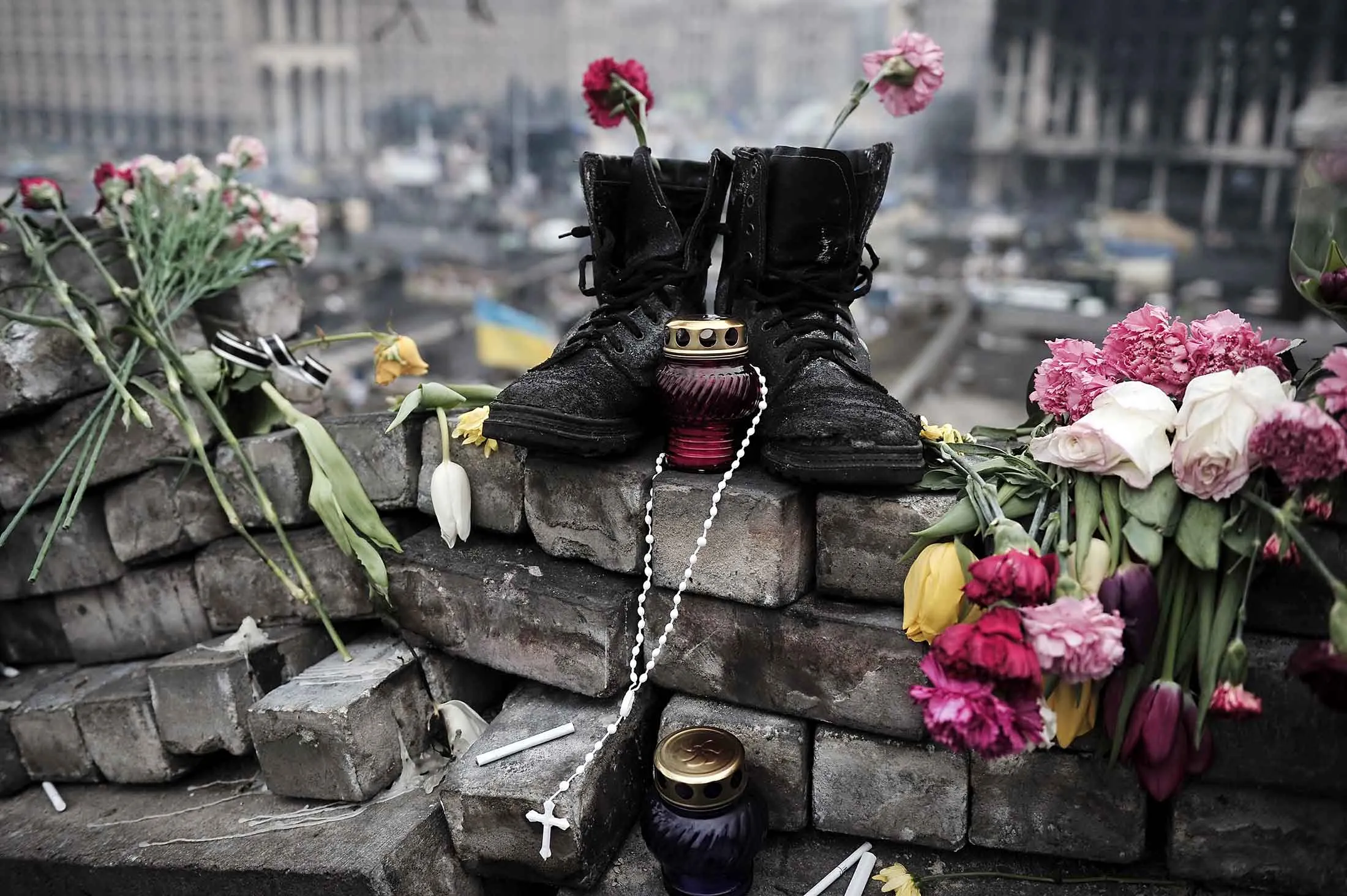2014年俄罗斯武装入侵克里米亚后,抗议者的靴子留在基辅独立广场的临时纪念碑上。摄影师:Louisa Gouliamaki/法新社/盖蒂图片社四年后,投资者纷纷涌入。根据彭博巴克莱指数,乌克兰的货币和外国债券在2019年为所有新兴市场提供了最高的回报。