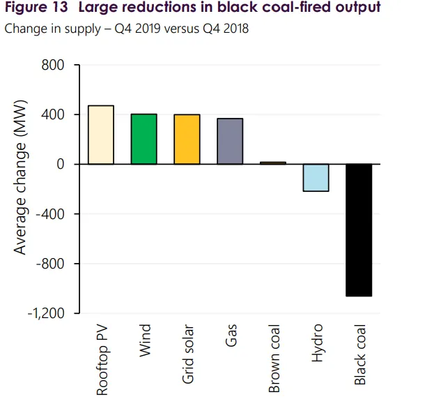 可再生能源的增长正在减少澳大利亚对煤炭的需求。来源:AEMO