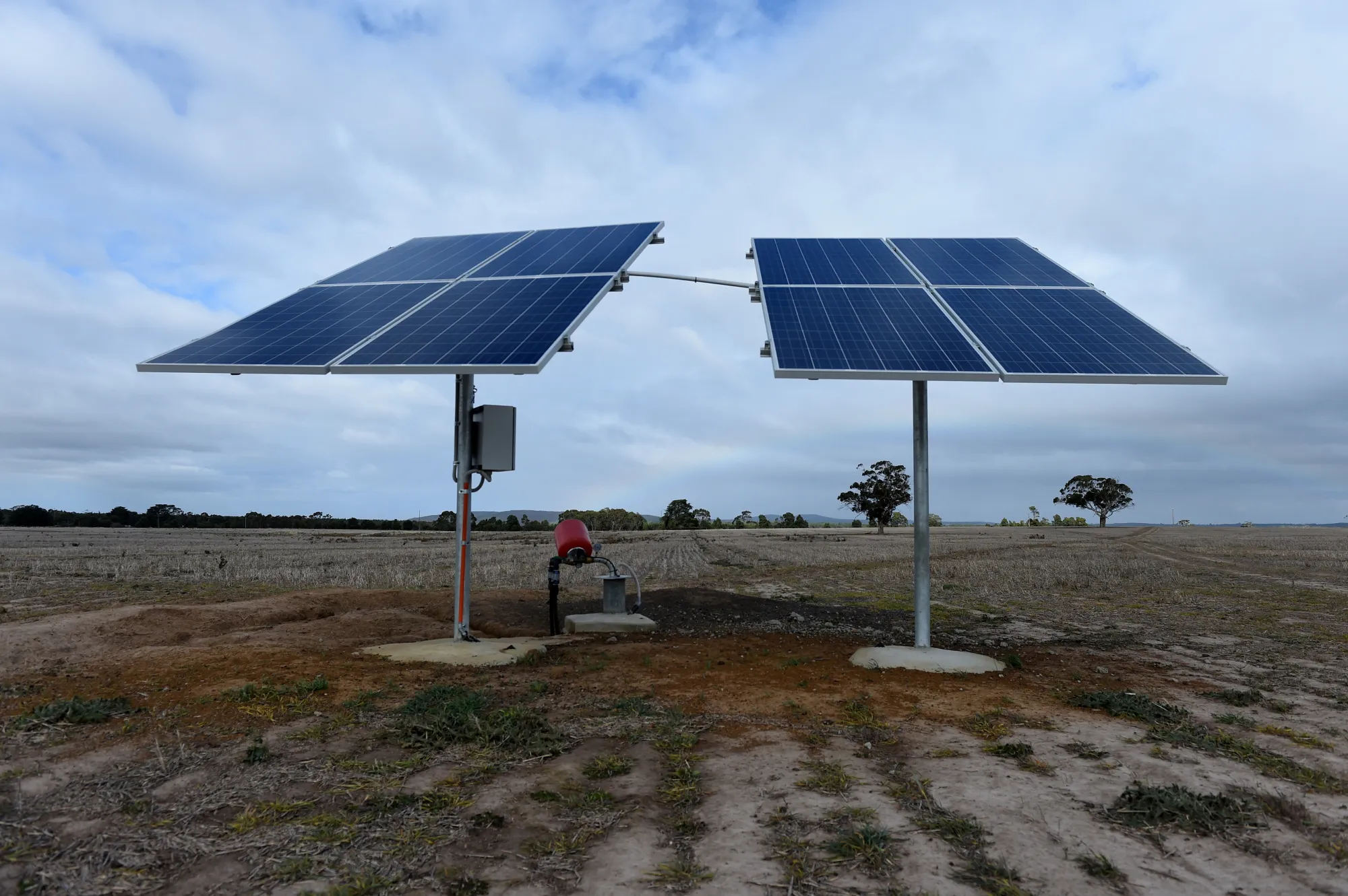 太阳能电池板位于维多利亚州拉尔拉尔镇的一处农场上。